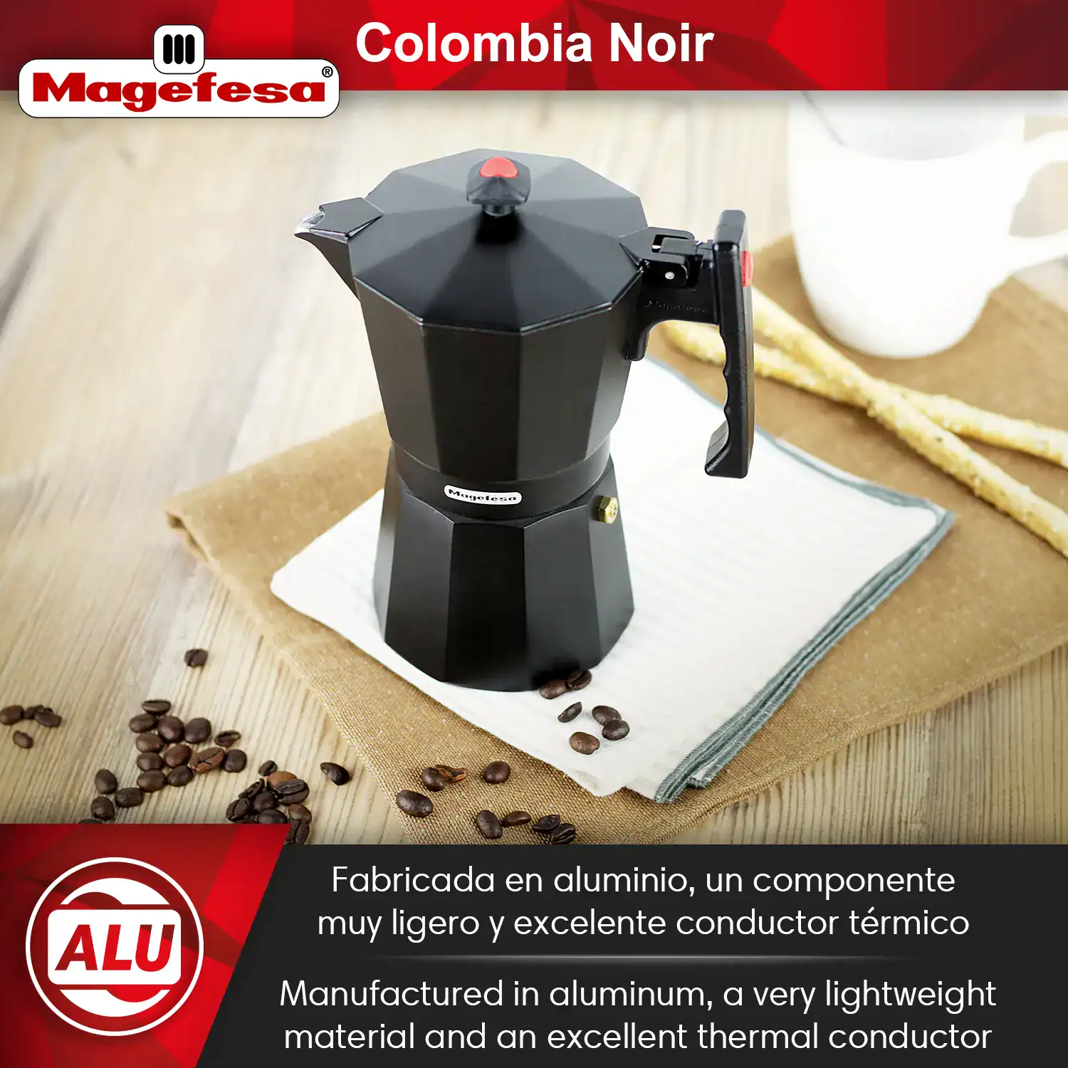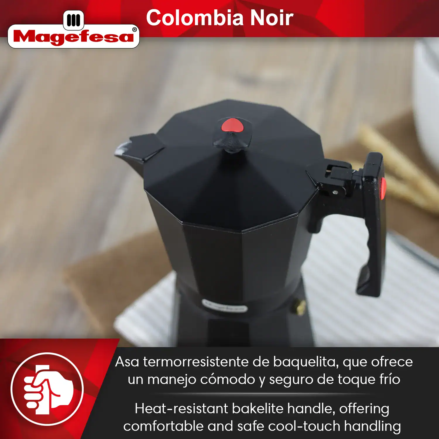 Magefesa Colombia Noir cups Stovetop Espresso Moka Pot, Italian Coffee Maker