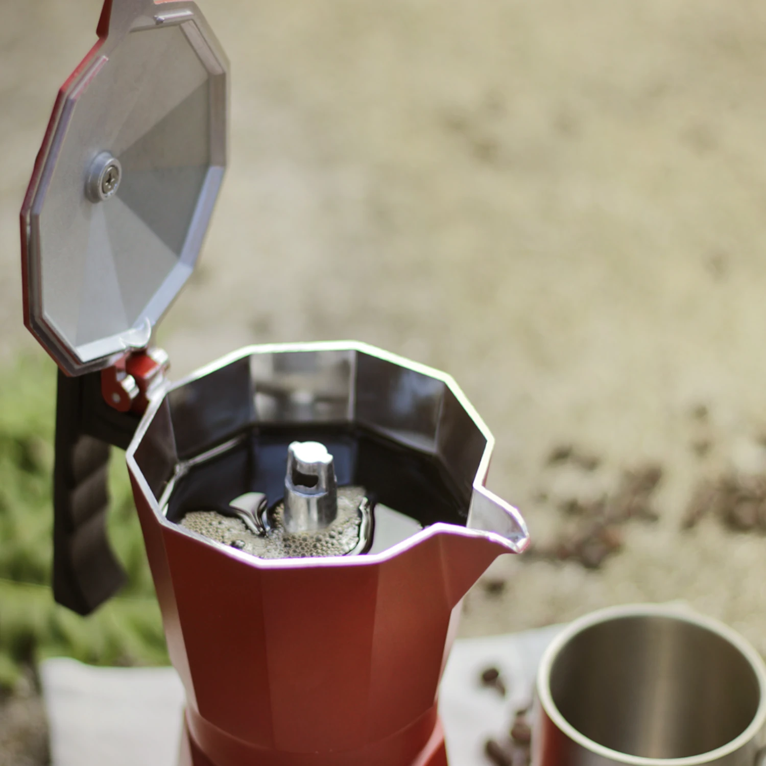 Crafted from high-quality aluminum, this moka pot ensures rapid and even heat distribution. Its ergonomic bakelite handle stays cool to the touch, providing a safe and comfortable grip for effortless pouring.