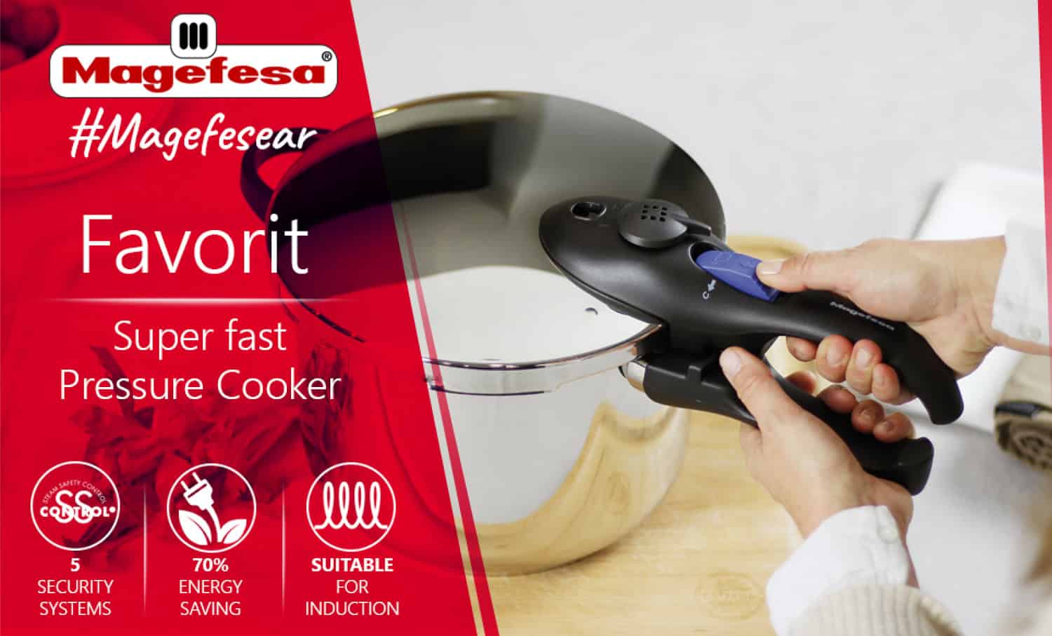 Magefesa Favorit Pressure Cooker + 50 Super fast pressure cooker Recipes | Cookbook + Super Fast Pressure Cooker Basket