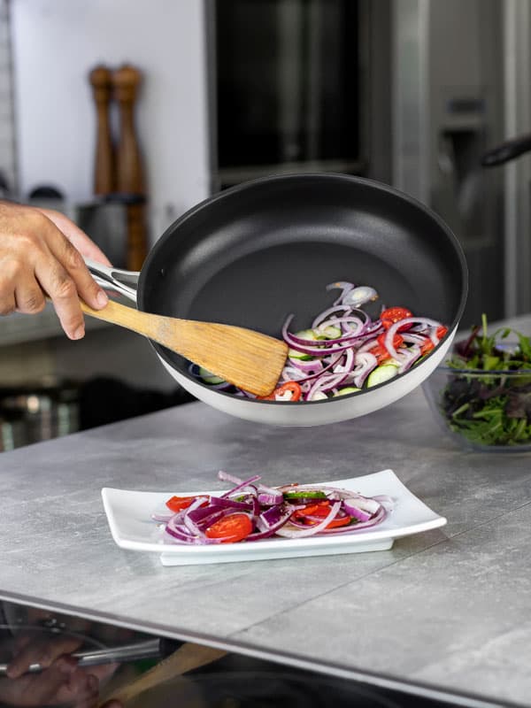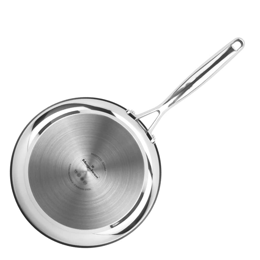 Introducing our Balance premium frying pan, meticulously crafted from high-quality stainless steel. Featuring a triple-layer thermodiffuser base, it guarantees even heat distribution and is suitable for all types of heat sources, including induction.
