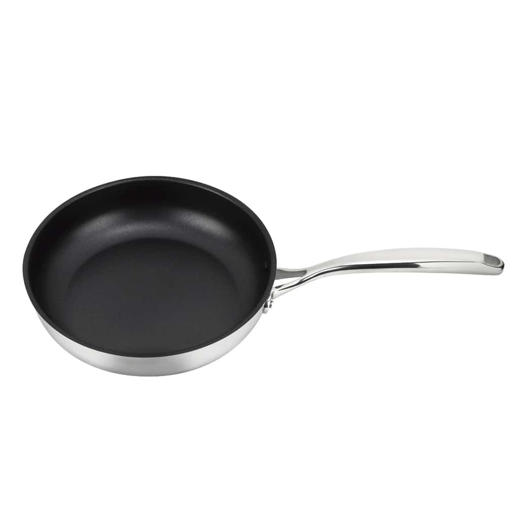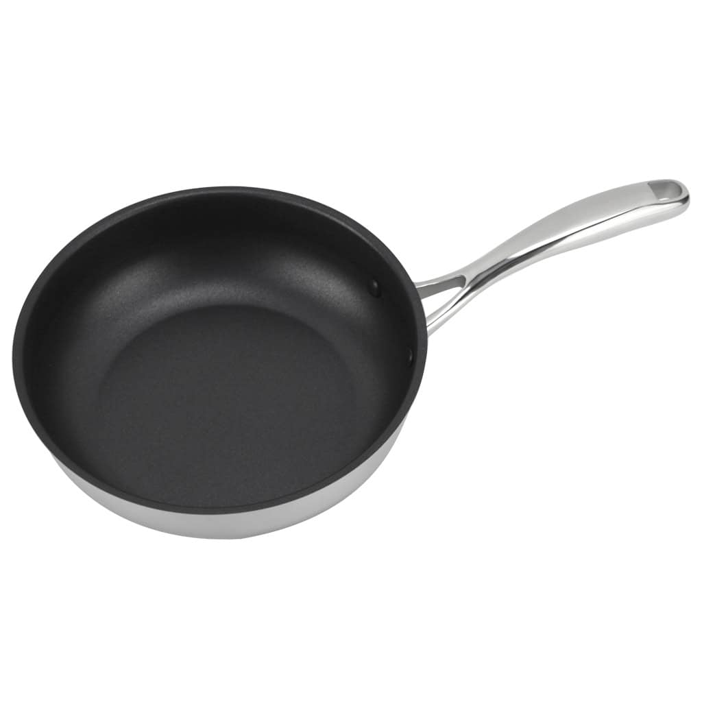 The dual-layer Xylan Plus non-stick coating ensures effortless cooking and easy cleaning. With a splash-proof design and polished mirror finish, this deep frying pan combines elegance with functionality. Its riveted stainless steel handle provides durability, while being oven safe up to 392ºF enhances versatility in your kitchen.