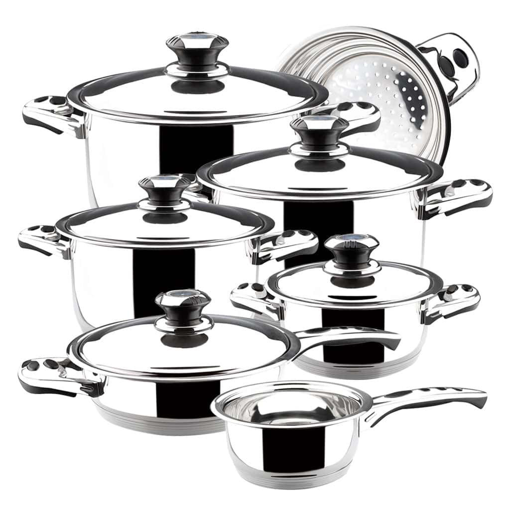 This premium stainless steel cookware set has been designed for chefs and home cooks who demand performance, precision, and style. Crafted from beautifully polished stainless steel, it combines durability, elegance, and advanced technology for professional-grade cooking results.