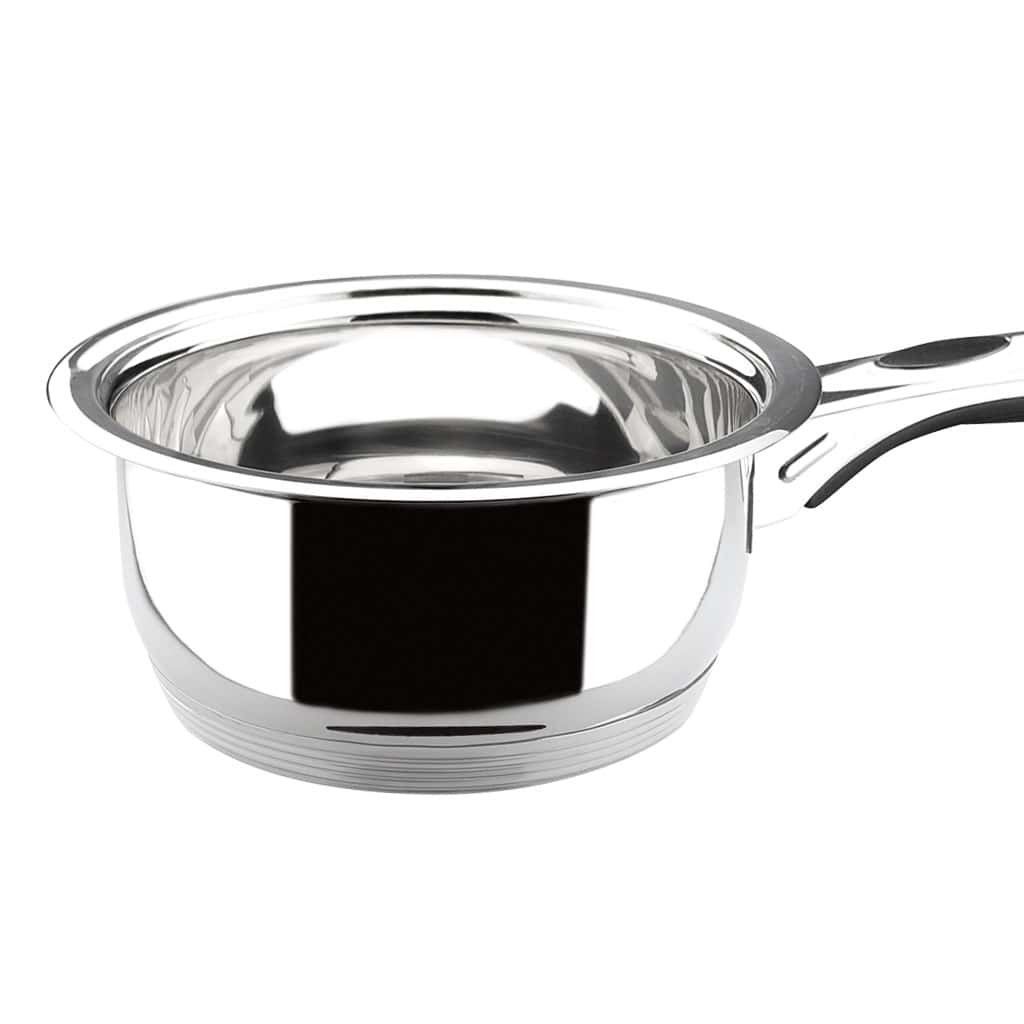 The mirror-polished finish not only enhances resistance to scratches and stains but also adds a sleek, modern touch to your kitchen. Stay-cool riveted handles ensure safe and comfortable handling, and the tapered rims make pouring clean and drip-free. A flat base maximizes contact with your cooktop, improving energy efficiency and ensuring compatibility with all heat sources — including induction, gas, electric, and ceramic.