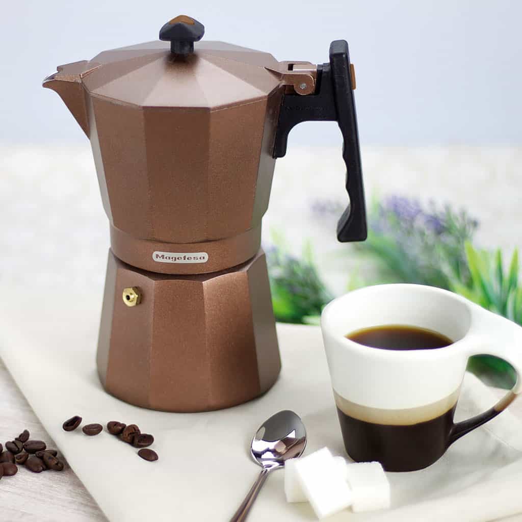 Its specially designed induction compatible base makes it suitable for all types of cooktops, including induction, without sacrificing the classic moka brewing method. The elegant brown finish adds a warm, contemporary touch, making it a stylish addition to both modern and traditional kitchens.