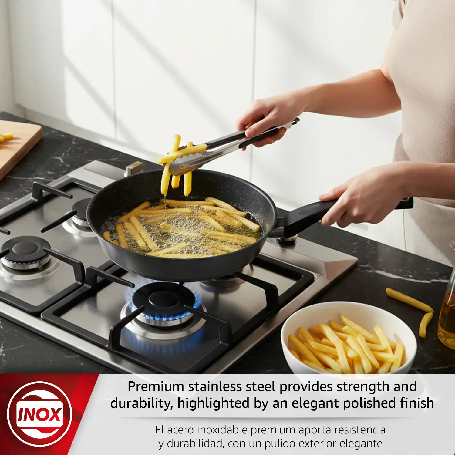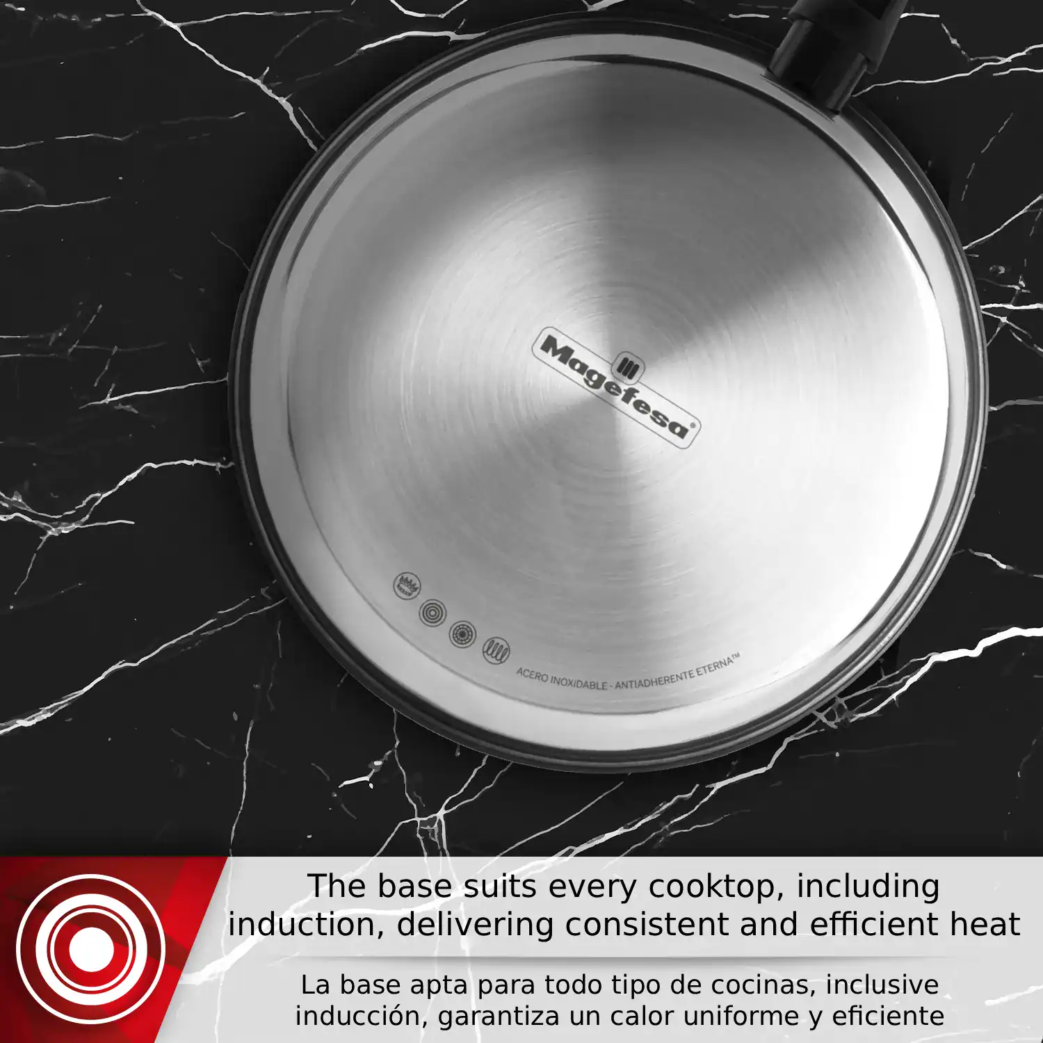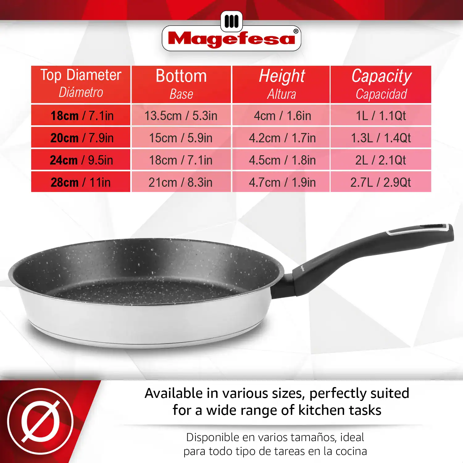 • Professional-grade durability: The Magefesa Onix frying pan is Made of 18/10 stainless steel for excellent resistance to wear, corrosion, and daily use, with a polished finish that adds a touch of elegance.
