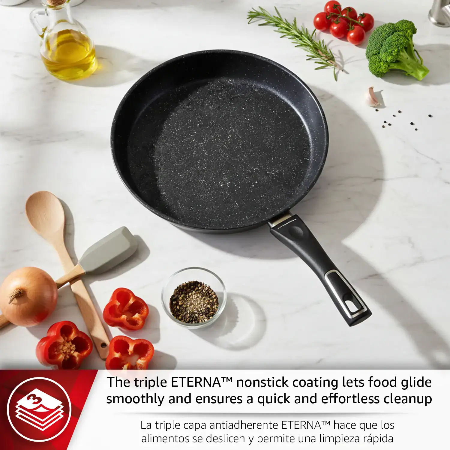• Advanced nonstick coating: Features triple-layer ETERNA coating, completely PFOA-free, for effortless food release, healthier cooking, and easy cleaning.