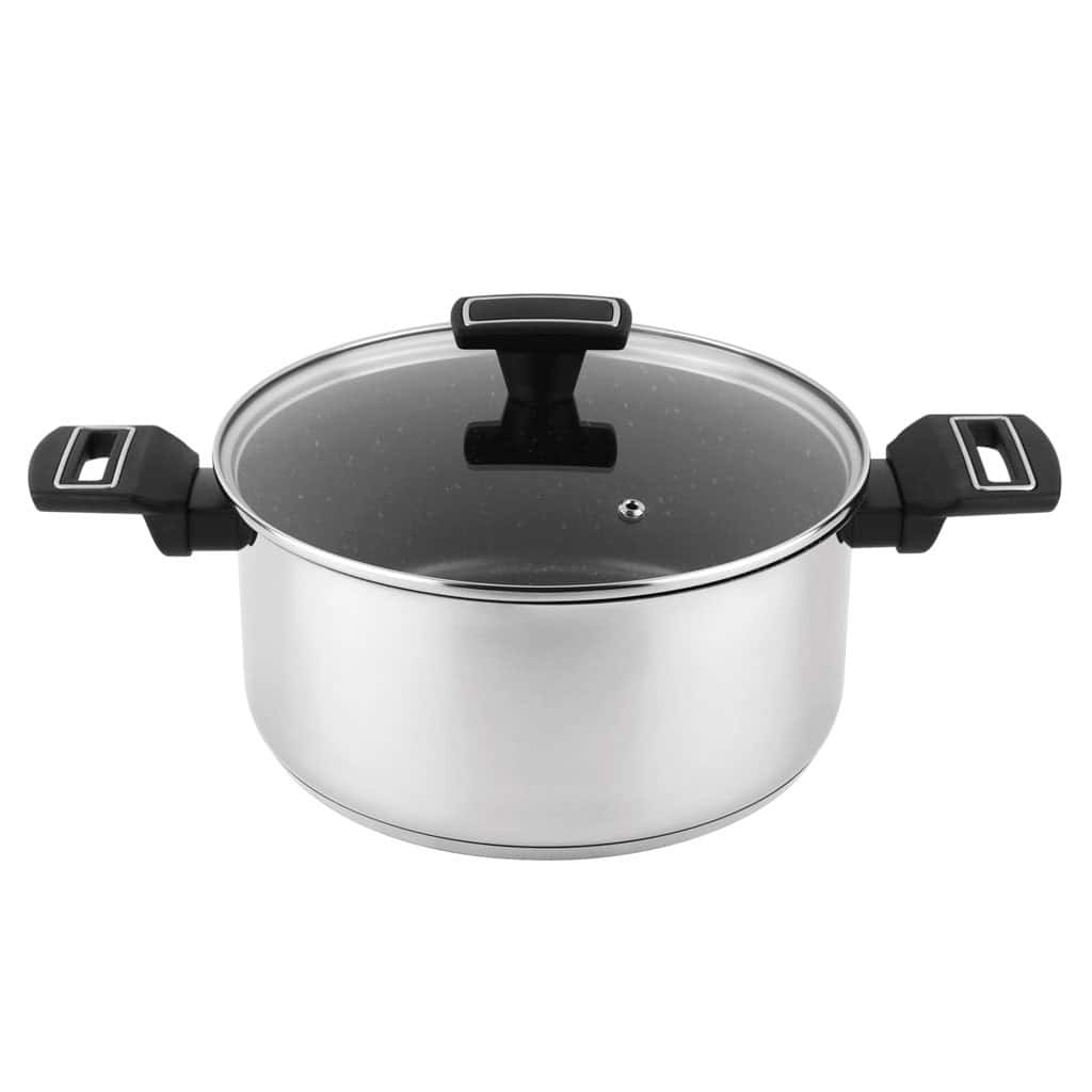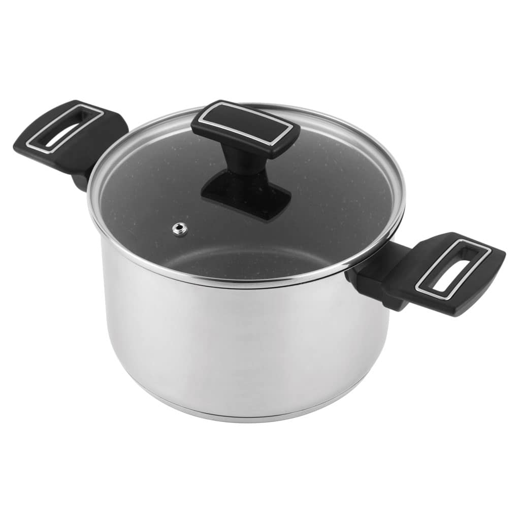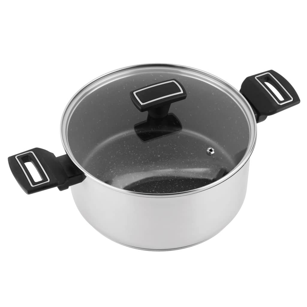 The stockpot features a tempered glass lid with a steam vent, allowing you to monitor cooking progress without lifting the lid. This helps retain heat, moisture, and flavors while preventing excessive pressure buildup. The transparent lid is especially useful for soups, broths, pasta, and slow-simmered dishes where visual control is essential.