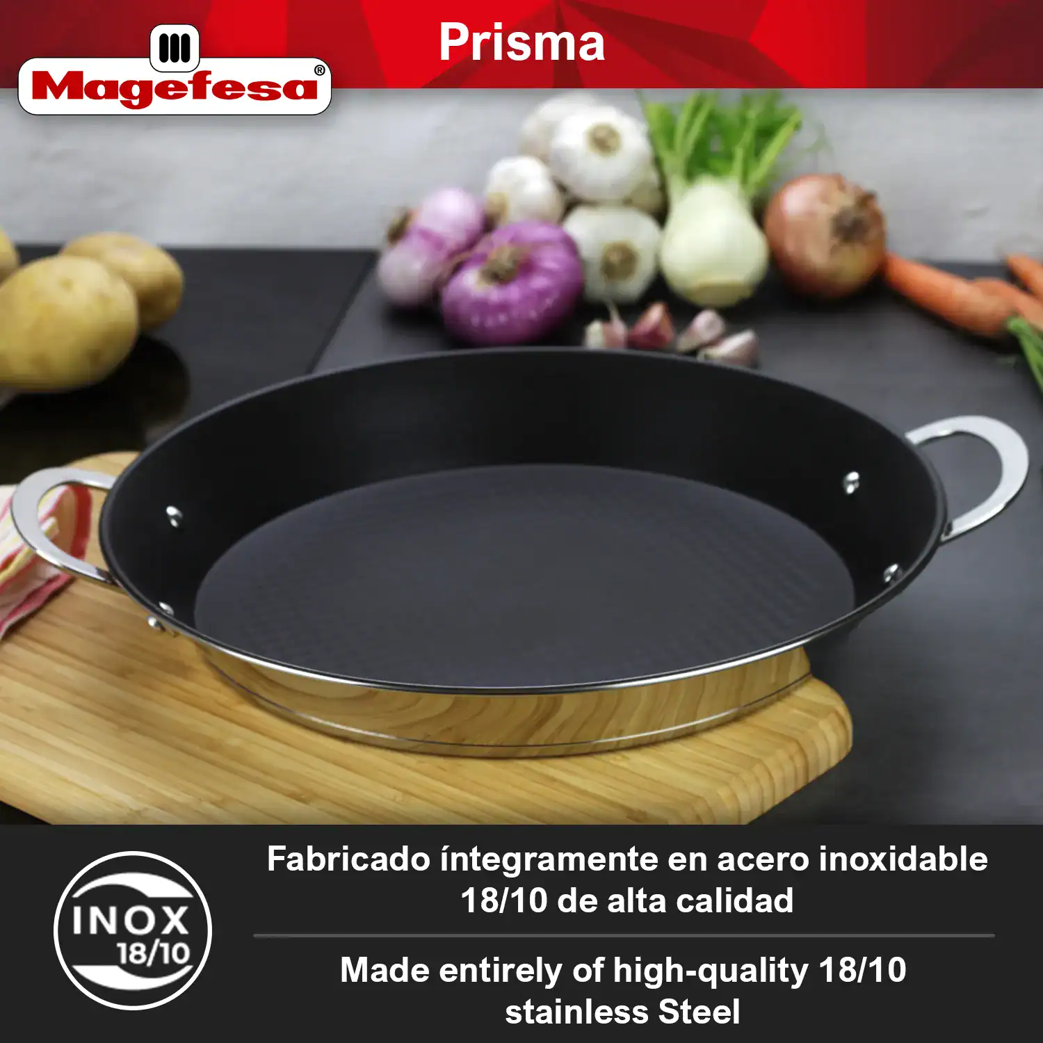 • Suitable for all types of kitchens: PRISMA paella pan is specially designed for INDUCTION cookers, it is also compatible with gas, electric and glass-ceramic cookers