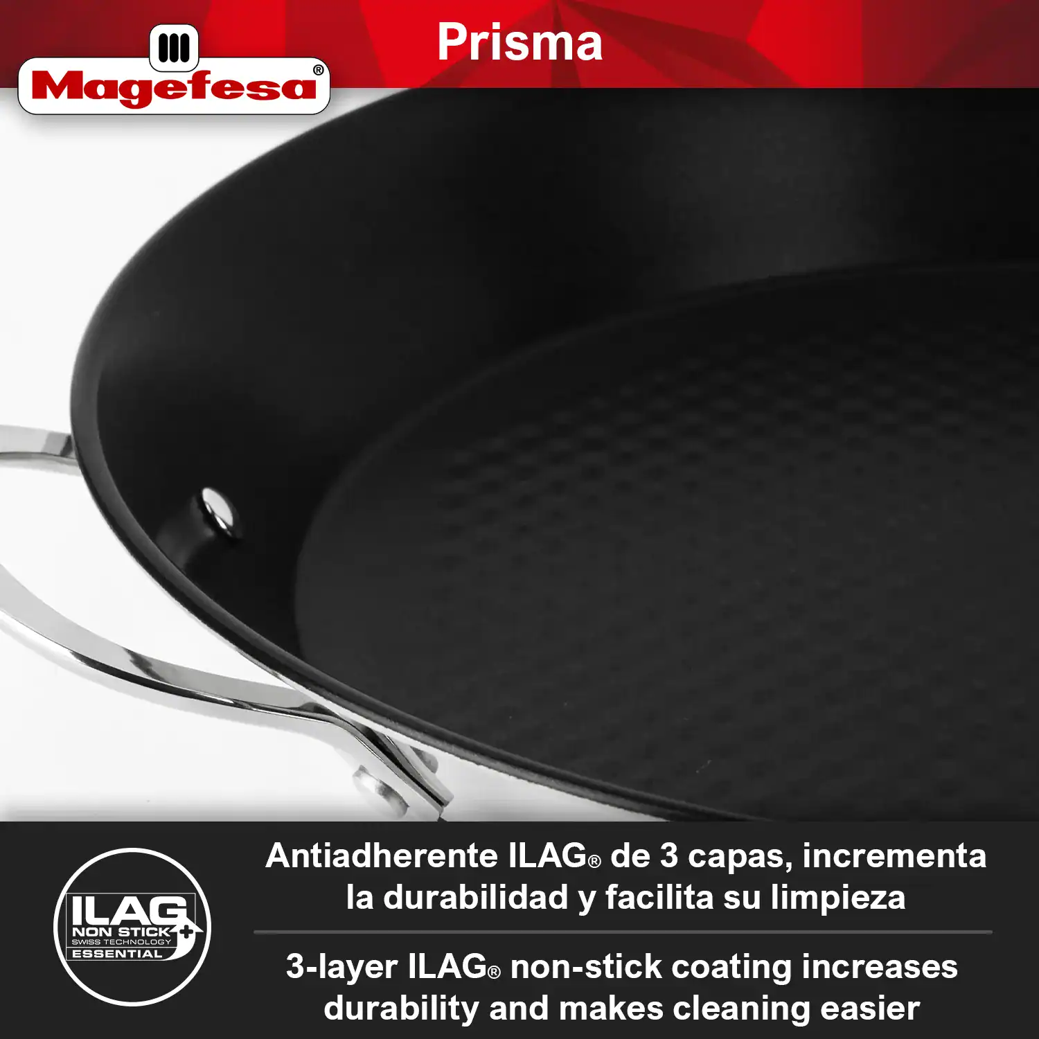 • Triple layer non-stick: The reinforced triple-layer ILAG non-stick increases the durability of the product. Has been designed without PFOA, lead or cadmium