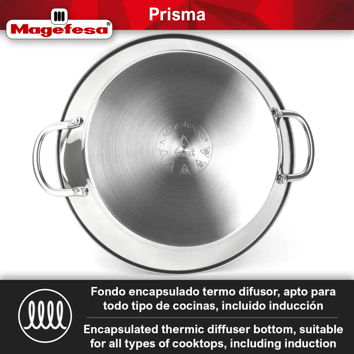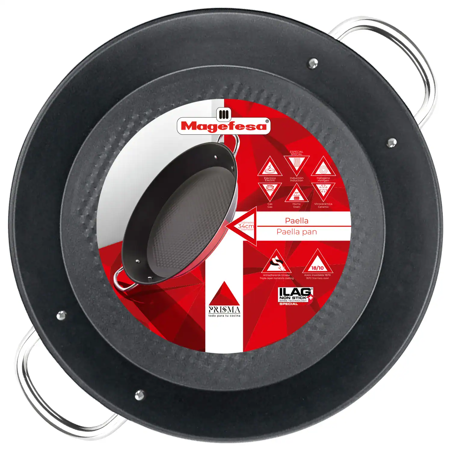 • Uniform heat distribution: The MAGEFESA PRISMA paella pan has a thermo-diffusing bottom that guarantees rapid and uniform heat distribution
