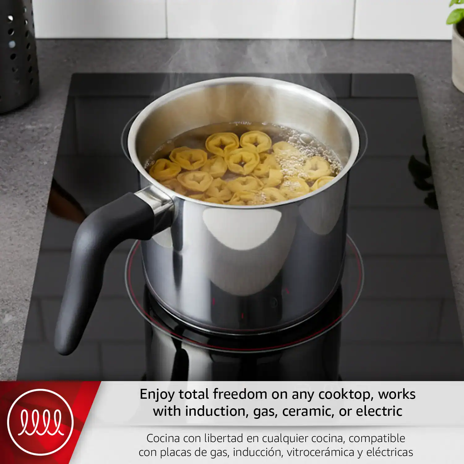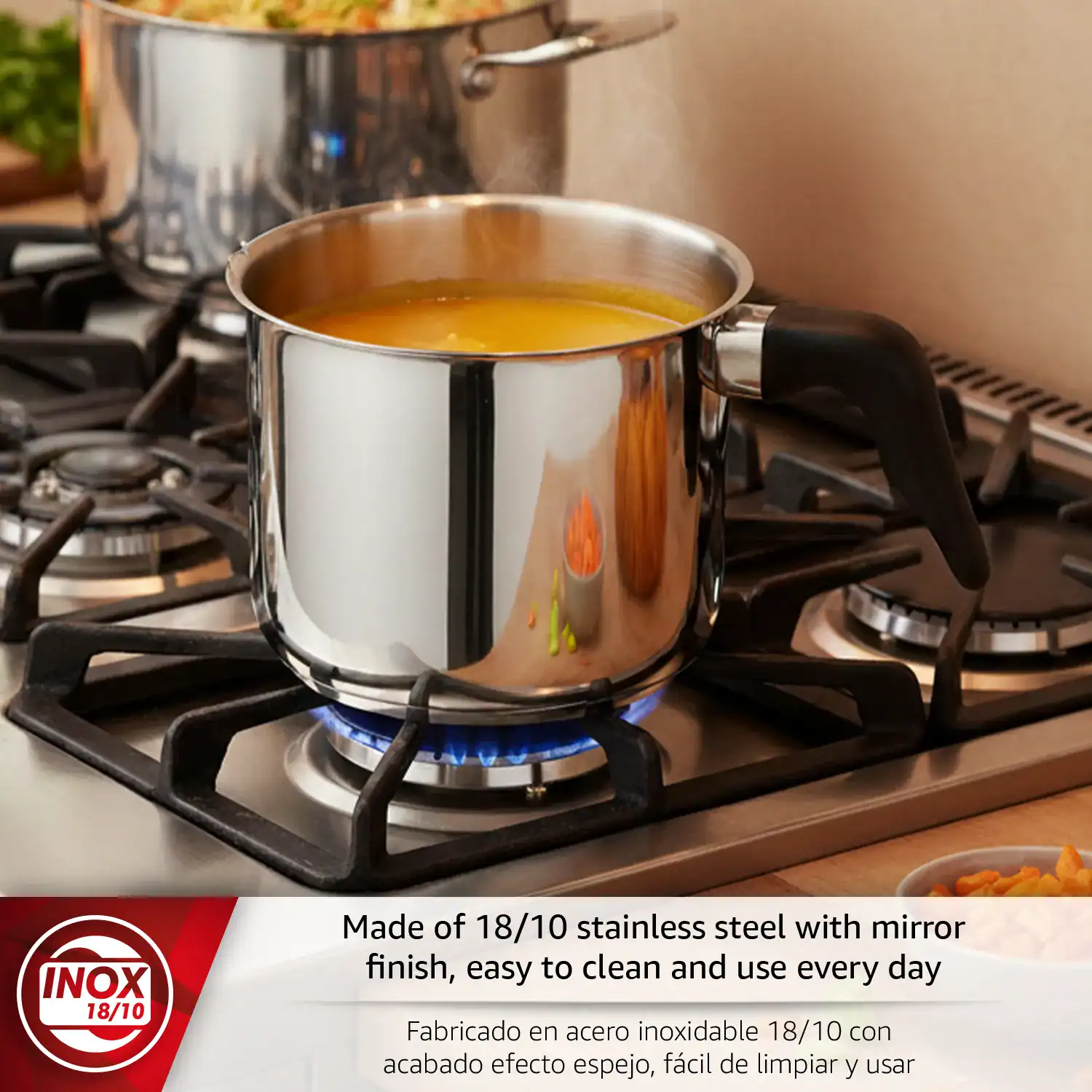 Designed in stainless steel pumped body, this Royal Milk Server offers classic timeless styling and great durability. Aluminum encapsulated core ensures fast and uniform heat distribution avoiding hot spots. Perfect flat base guarantees maximum contact with burners and energy efficiency. Satin stainless steel cooking surface does not react with food or alters flavors.