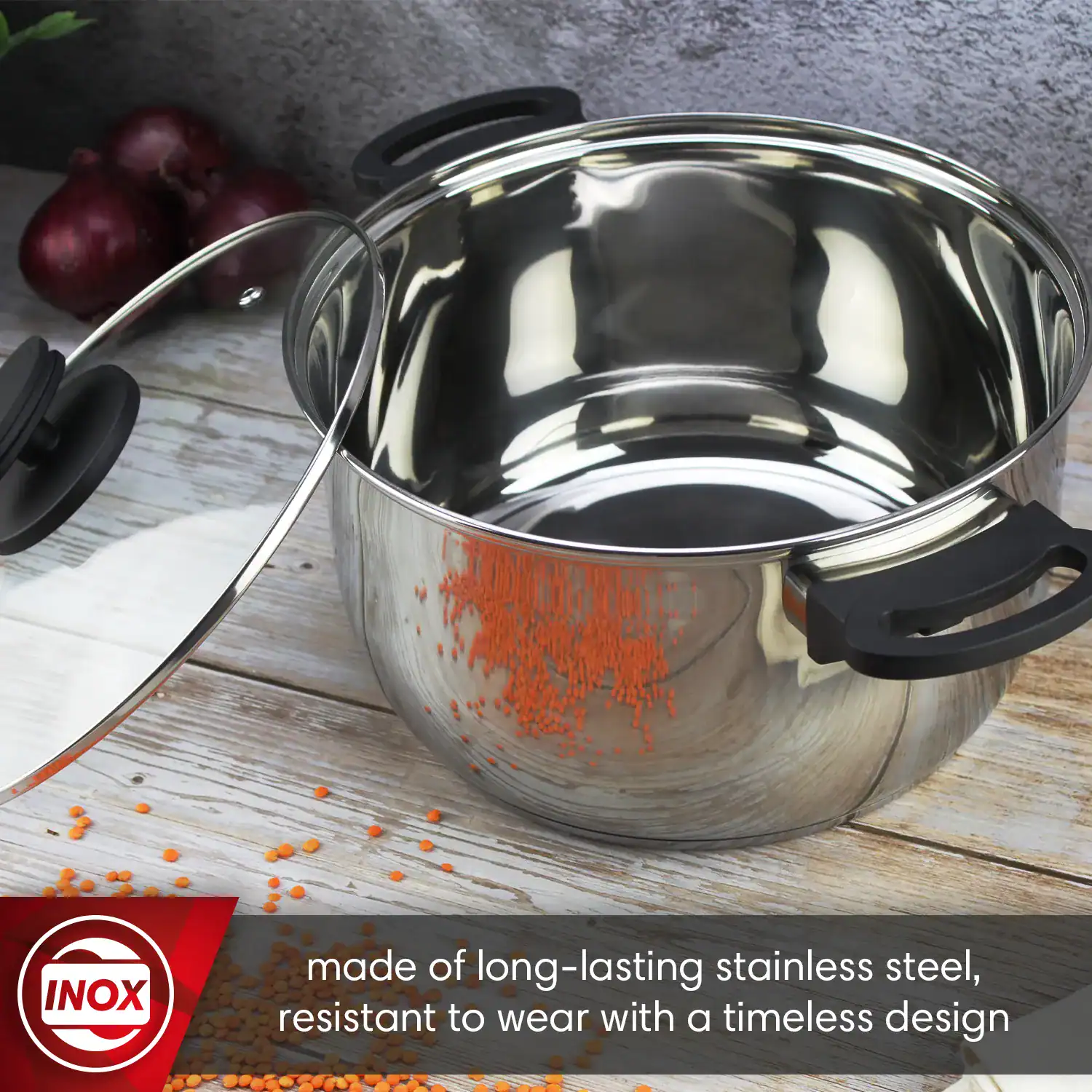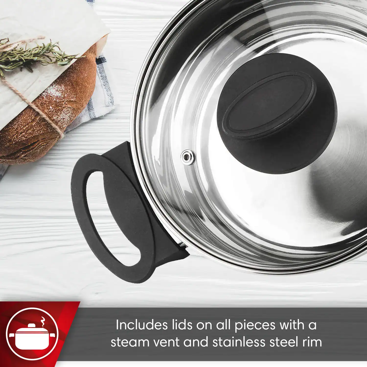 A distinctive feature of this cookware is its glass lids. These lids allow you to observe the cooking process without lifting them, which helps conserve heat and moisture. The integrated steam vent chimney is an ingenious solution that allows the pressure inside the cookware to be regulated, preventing spills and allowing for controlled cooking.